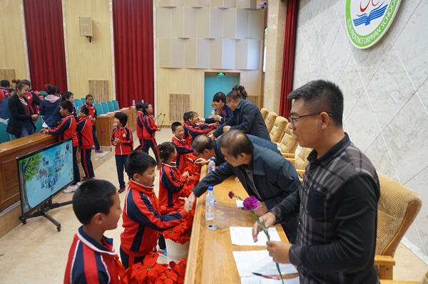 学生用康乃馨表达对老师们的敬爱:“老师,您辛苦了!”