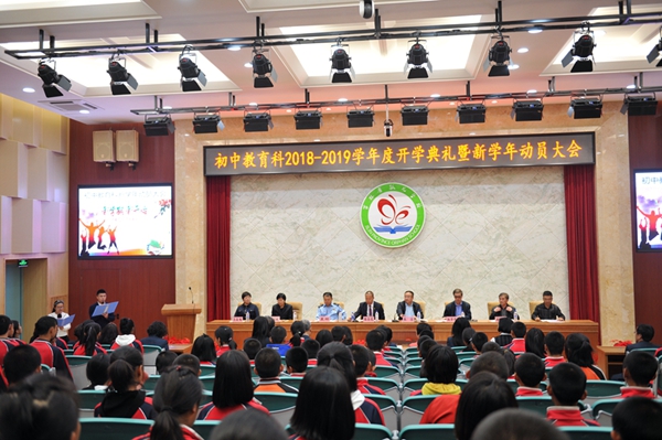 九月耀金,累累芳华。新学年如期而至,初中部又再一次昂首挺胸,行走在青春路上!2018年9月27日,全体初中教育科师生在我校阶梯教室召开了2018—2019学年度开学典礼暨新学年动员大会。