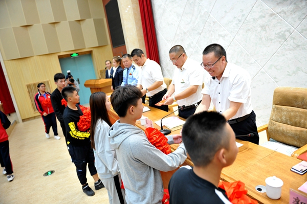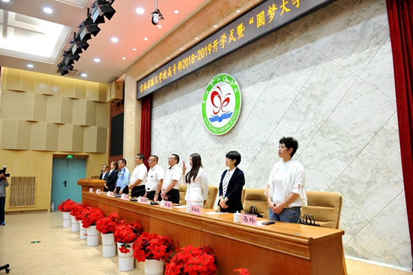 与会的各位爱心企业代表还现场为孩子们加油打气,并与学校领导班子为获奖集体和个人颁奖,王海龙同学代表2018届考入大学的学生发表了获奖感言,高二优秀学生代表孙怡同学用生动活泼的语言和大家一起分享了假期收获,李昊同学,带领全体高专部学子进行了新学期宣誓。