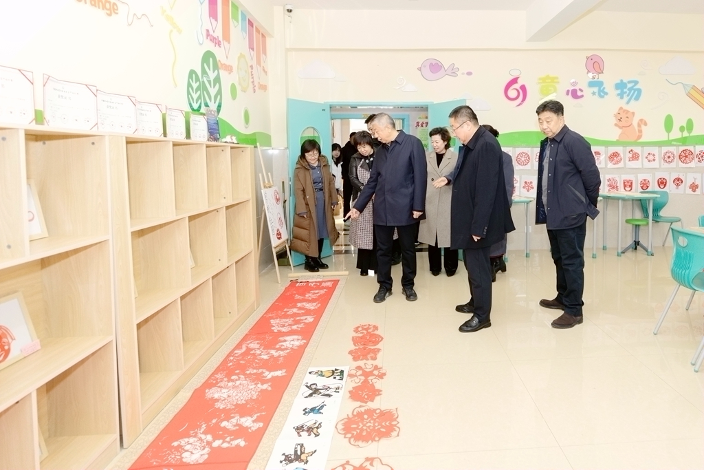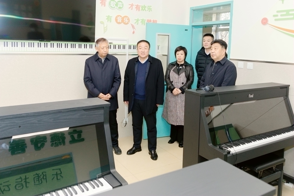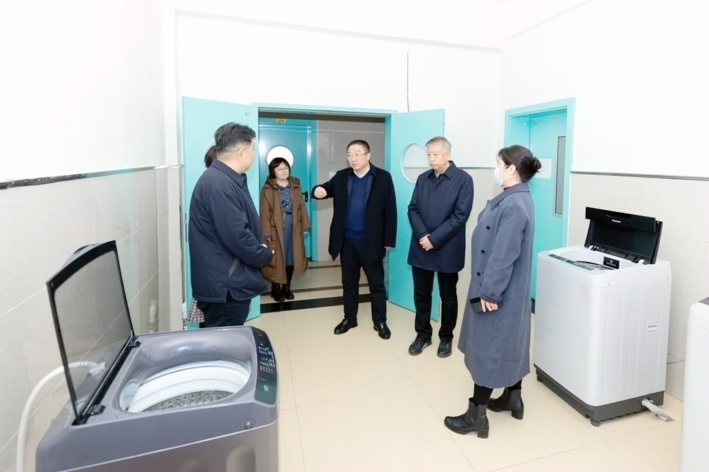 在张洁校长的陪同下,一行人走进宿舍、教学楼、学生发展中心,实地了解孩子们的学习生活环境,细致了解他们的实际需求。每一步足迹,每一句询问,都凝聚着浓浓的牵挂与关怀。