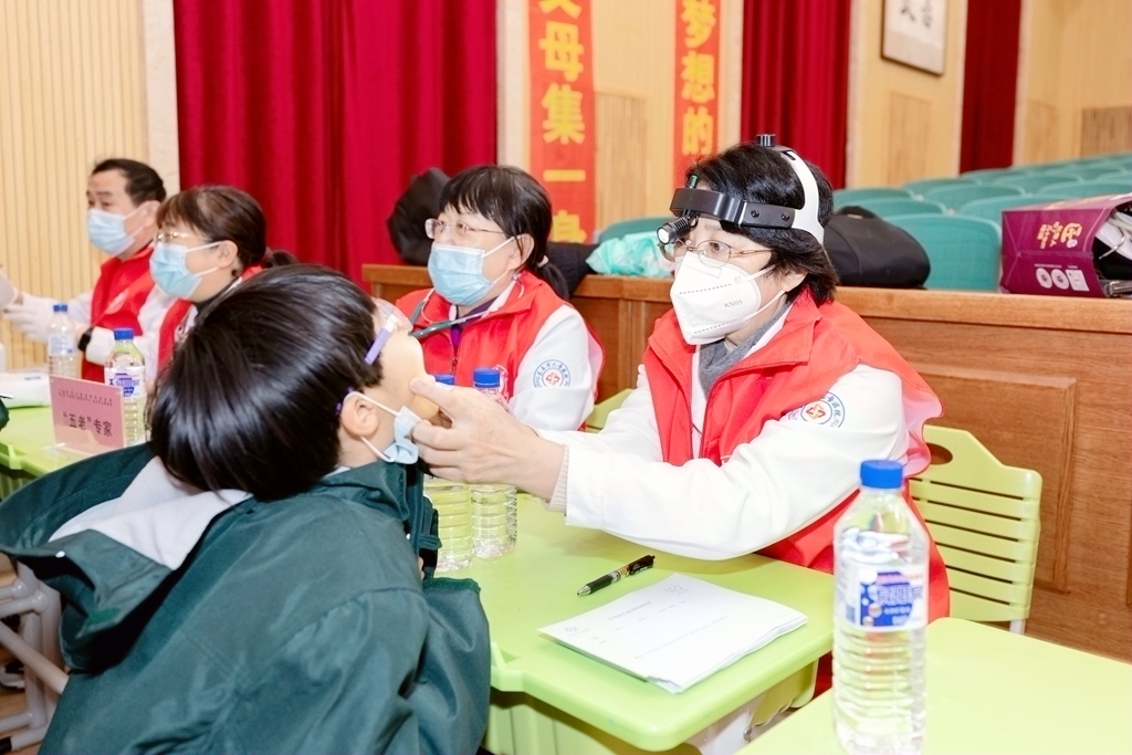 义诊现场温馨有序,来自医院内科、呼吸科、儿保科、口腔科、耳鼻喉科、眼科等多个科室的专家们,耐心细致地为孩子们进行检查。