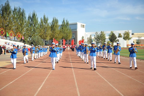 首先进行的是检阅式,国旗、校旗、鼓乐队、刀旗队、各班级受阅队伍迈着整齐的步伐,喊着嘹亮的口号相继通过主席台,接受大会领导组和全校师生的检阅,全面展示了我校师生的精神风貌。