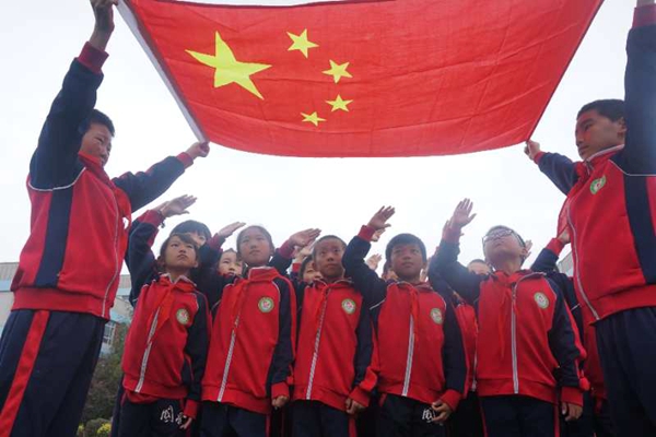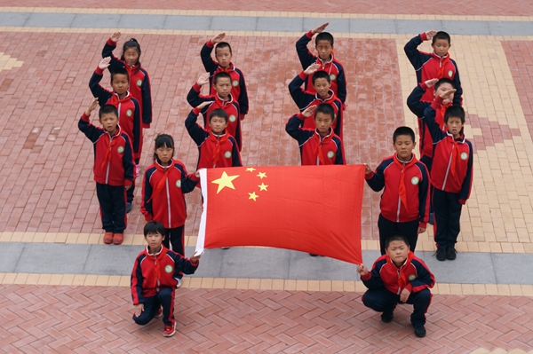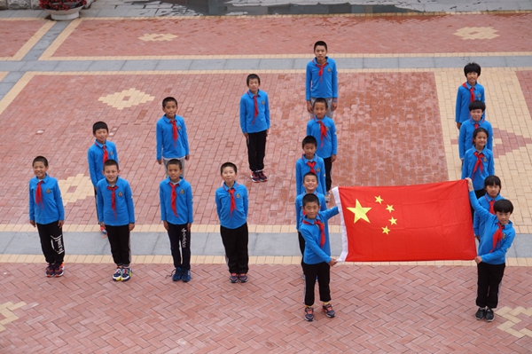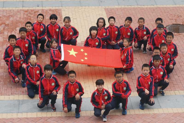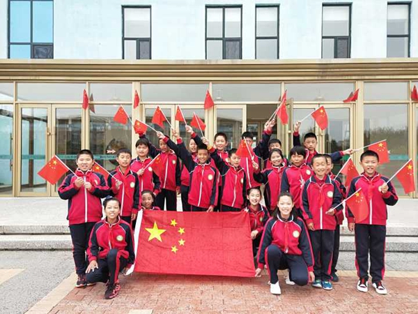 活动中,孩子们身穿学校校服,佩戴红领巾,摆出各种各样的动作同鲜艳的五星红旗合影,表达致敬。在校园内掀起了弘扬爱国主义精神、传递少先队员爱国情怀的浓厚氛围。