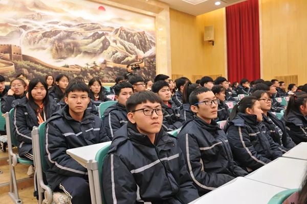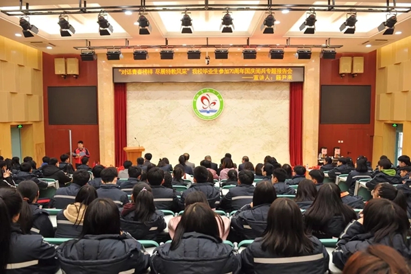 2019年12月12日下午,高中全体学生齐聚在我校多功能教室,翘首以盼他们的学姐归来,为他们做 “参加70年国庆阅兵”主题报告会。学校领导、部分教师及近200名高中学生参加此次活动。