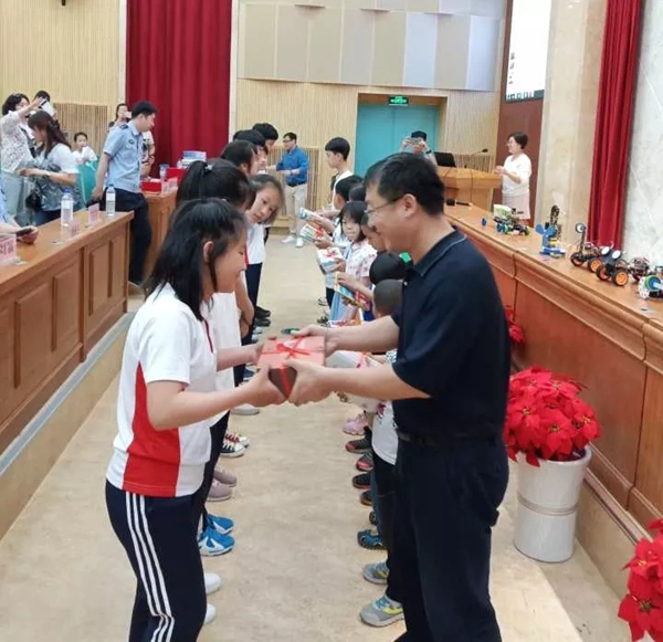 5月25日,吉林省科普公益行来到我校,聂振宇副调研员带领来宾参观并介绍了校园。大家都被学生们的幸福生活深深地震撼着。在多功能报告厅,张甲老师为孩子们讲授了一堂精彩的科学课《科技与环保》,深受学生喜爱。公益行理事长刘福教授及来自各地的小朋友为初中教育科学生捐赠了书籍、文具等学习用品。