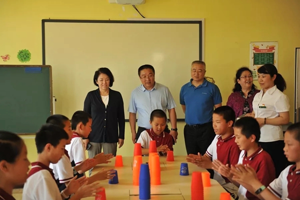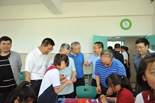 政协的领导、委员和专家们在省民政厅相瑛副厅长、孤儿学校张洁校长及校领导班子成员的陪同下参观了校园,委员和专家们饶有兴趣的参观了小学社团活动并与孩子们互动。