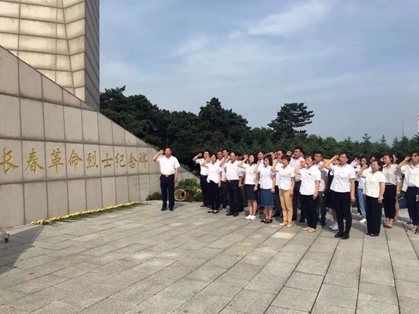为全面贯彻党的十九大精神,认真践行“不忘初心,牢记使命”主题教育活动,6月25日下午,我校全体党员、积极分子共36人,在刘永双副校长的带领下,前往长春烈士陵园开展“不忘初心缅英烈,牢记使命敢担当”的“七一”党日活动。
