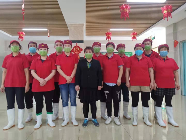 食堂作为伙食供应服务窗口,首先对员工开展疫情防控培训,务必做好有效个人防护及个人卫生,按要求穿戴劳动保护用品,早餐前、晚餐前对员工身体健康状况进行讯问及测温,封闭管理,所有人员禁止出入校园,强值守、保供应,严控食材进货渠道,按食谱做好加餐,做到营养配餐,每日三餐按时供应,每餐餐具利用远红外高温消毒柜120℃进行消毒,每餐前进行通风,并对餐厅地面、桌椅、门把手、电梯等区域用1:200的84配比溶液喷洒消毒,工作做实作细,确保饮食安全。