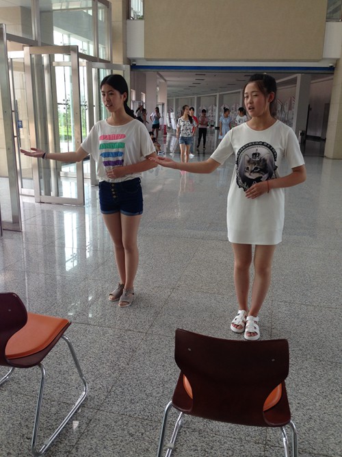 队员们不仅要克服天气的炎热,还要调节好归心似箭的急切,他们个个精神饱满,热情十足,训练也在兴奋和激动的氛围下正式展开。指导老师是来自吉林财经大学的优秀志愿者。训练中,指导老师亲身示范,将标准的站姿展示给每一个队员,让队员们了解了怎样才能做到“优雅”“大方”“得体”。队员们也十分积极,努力刻苦地寻找动作要领,并能在标准站姿的要求下站立数十分钟之久。