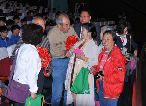 联谊会上,张洁校长代表学校欢迎校友们回家。不同时期的校友们也为大家献上了自己的拿手节目,表达自己对学校的思念,对同学的真情。谈起当年的在校生涯,校友们的话语中饱含深情,说那仍然是“记忆中最美好的岁月,一辈子也忘不了”。大家感谢党的哺育,学校的培养。沈阳市纯月艺术团的团长孙纯月今年已经73岁高龄,她不仅和她一起在学校长大的好姐妹给大家带来了优美的舞蹈,为母校赠送了两面锦旗,更为母校送来了珍贵的照片,1956年六一儿童节学校的集体照,这是迄今为止学校最早的一张照片,它见证了学校的变化,让人不禁回想起那个年代的故事。