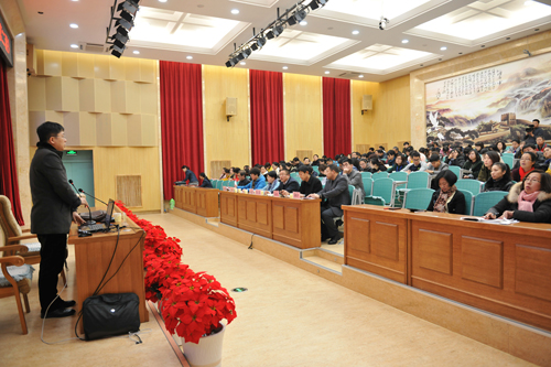 这是郎镝博士继2015年为我校教师带来儒家《孝经》经典讲座之后,第二次来我校进行传统文化交流。他首先提出了自己对传统文化的看法。强调所谓“国学”,就是传统文化的思想体系、文化观念、精神追求、学术方法和社会内容。今天的传统文化,应该更好地为社会建设和教育发展服务。