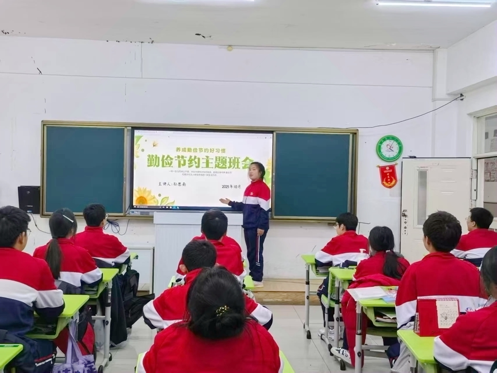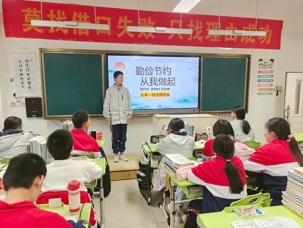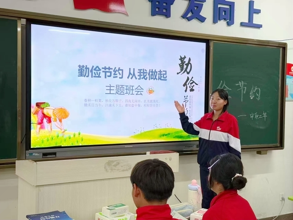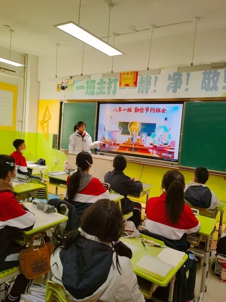 主题班会上,班主任老师们以校园内粮食浪费、水电闲置等真实现象为切入点,通过案例剖析引发学生对“身边浪费”的深度思考;同学们则积极分享中外名人厉行勤俭的小故事,在互动交流中传递节约智慧。整场班会不仅让学生深刻认识到勤俭节约的时代价值,更从认知层面引导其树立 “节约光荣” 的观念,为同学们养成良好节约习惯、践行勤俭行动筑牢思想根基。