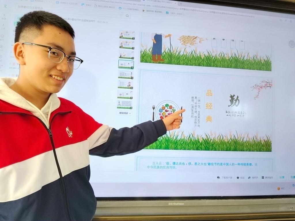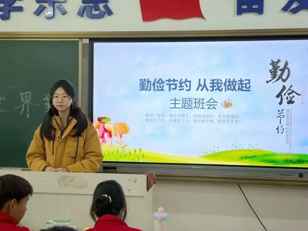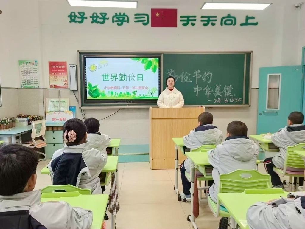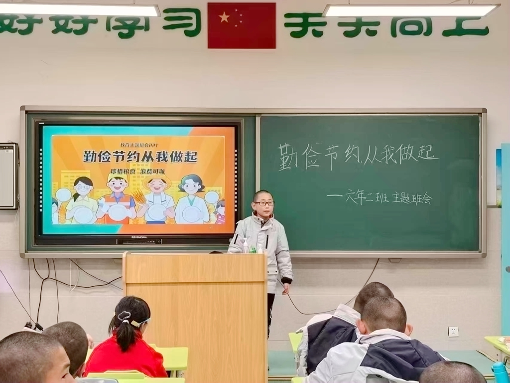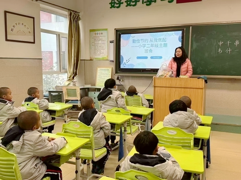 主题班会上,班主任老师们以校园内粮食浪费、水电闲置等真实现象为切入点,通过案例剖析引发学生对“身边浪费”的深度思考;同学们则积极分享中外名人厉行勤俭的小故事,在互动交流中传递节约智慧。整场班会不仅让学生深刻认识到勤俭节约的时代价值,更从认知层面引导其树立 “节约光荣” 的观念,为同学们养成良好节约习惯、践行勤俭行动筑牢思想根基。