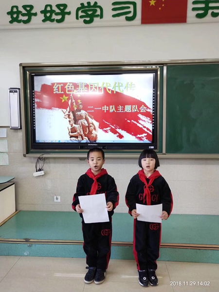 为深入贯彻落实习近平总书记“用实际行动把红色基因一代代传下去”、“从小事做起,从身边做起,努力争做新时代的好队员”的要求和勉励,2018年11月29日,吉林省孤儿学校少先队各中队召开了“传承红色基因·争做时代新人”主题中队会。