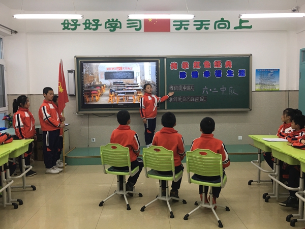 队会活动环节,各中队通过多种形式表达对英雄先烈的敬仰,对祖国的热爱,对美好生活的向往。